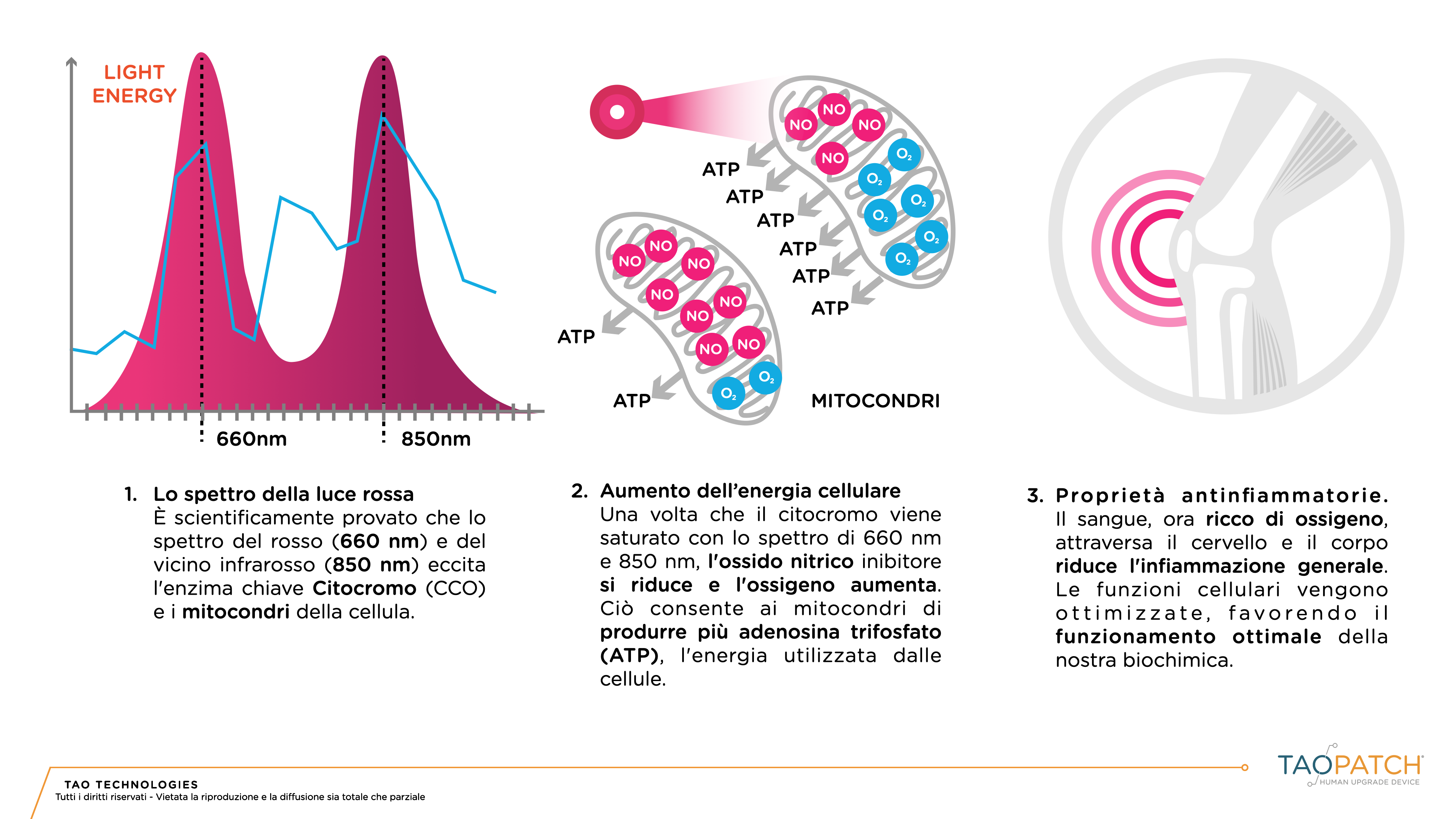 È questa la vera e propria energia cellulare, l’ATP utilizzata per ogni processo metabolico (guarigione, espulsione delle tossine, rigenerazione, prestazione, attività muscolare, ossigenazione del sangue, produzione di antiossidanti, ecc.). Ecco perché in questi anni l’uso della terapia luminosa indossabile, come i nostri brevetti con cui è realizzata la tecnologia Taopatch hanno spopolato nel trattamento dei disturbi neurologici ma anche nel miglioramento della prestazione sportiva. Ne abbiamo parlato anche nei precedenti numeri di Salute Plus e ne hanno parlato anche i giornali di tutto il mondo quando, Novak Djokovic – il tennista più forte di sempre – ha conquistato il suo record al Roland Garros indossando e mostrando a tutti questa nuova nanotecnologia.